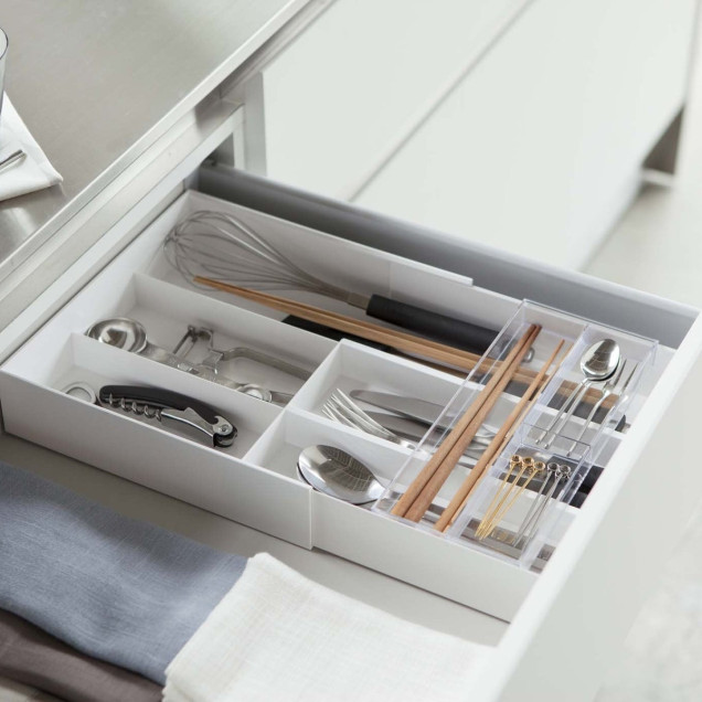 Depozitare pentru tacâmuri cu design extensibil și tavă glisantă
