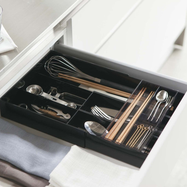 Depozitare pentru tacâmuri cu design extensibil și tavă glisantă