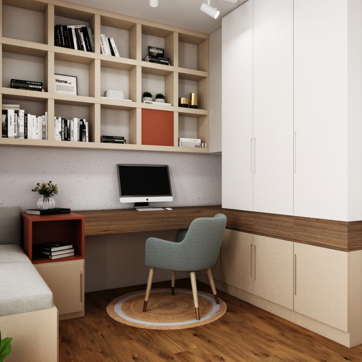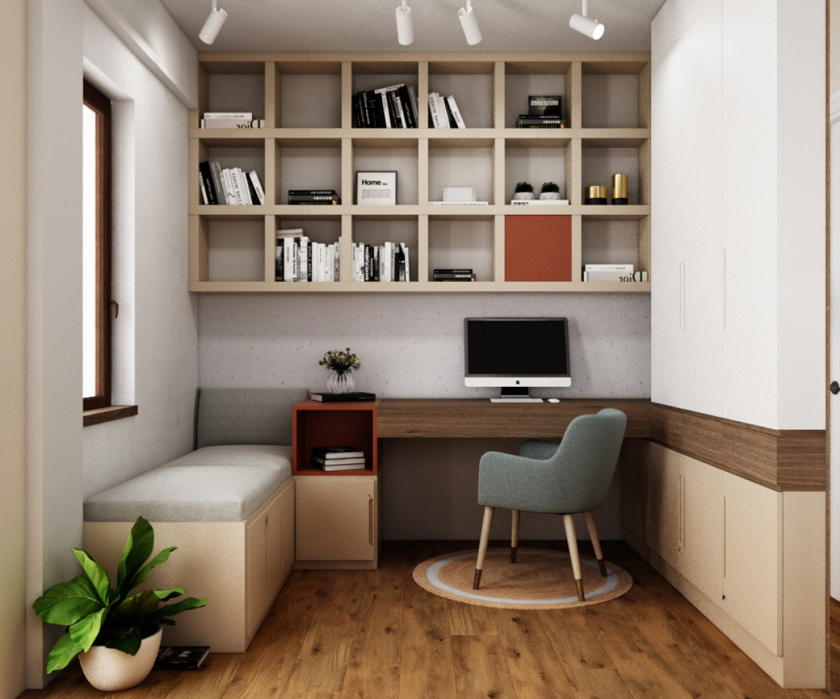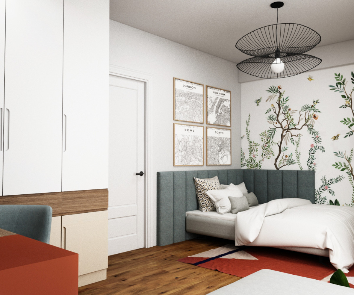 In configurarea camerei am avut in vedere ideea necesitatii unei zonificari, aceasta incapere adapostind mai multe activitati - relaxare, lucru, joaca, lectura etc. astfel, o zona se va contura ca fiind destinata odihnei si una lucrului.