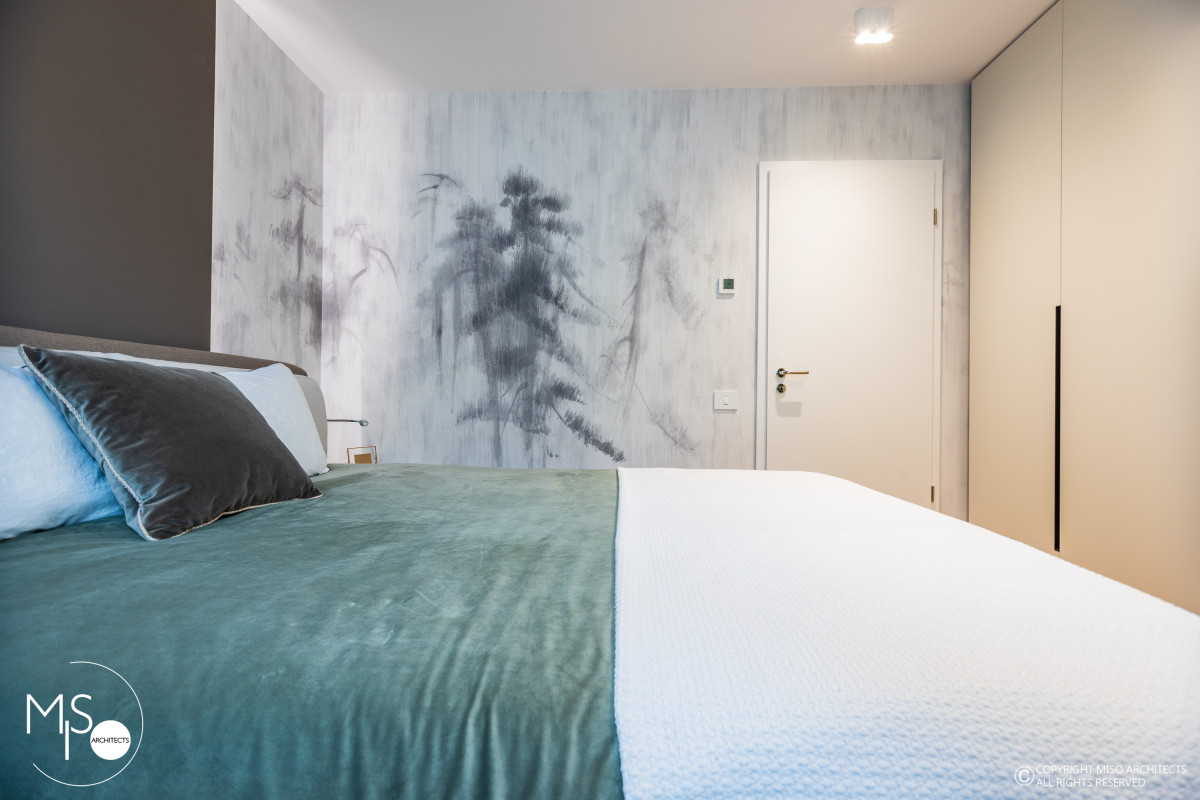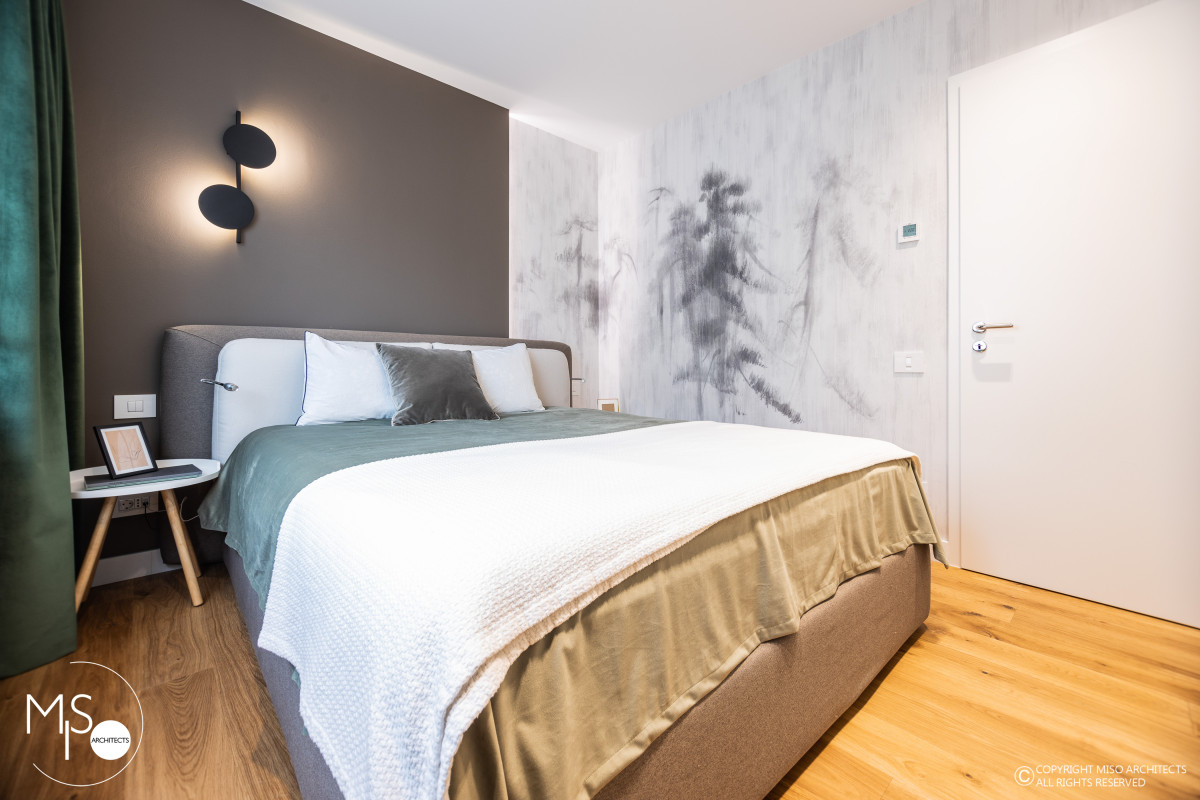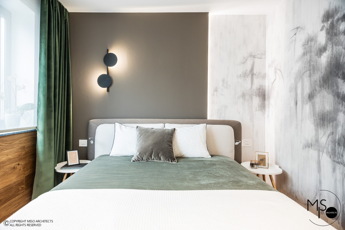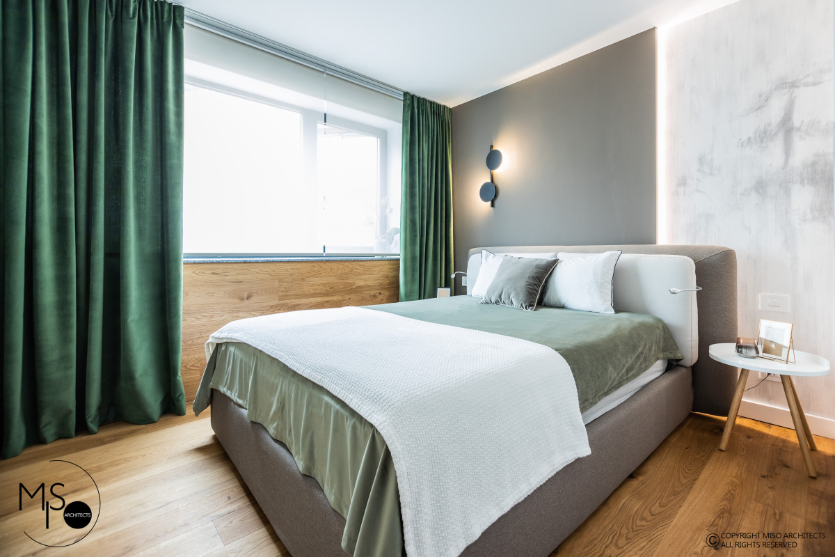 Proiectul Evergreen, situat în complexul rezidențial Stejăriș din Brașov, este o adevărată declarație de dragoste pentru natură. Echipa Miso Architects a reușit să estompeze granița dintre interior și exterior, lăsând peisajul montan spectaculos să dicteze atmosfera locuinței. Conceptul se bazează pe o cromatică vie, dominată de nuanțe de verde proaspăt și accente de lemn natur, care "încălzesc" spațiul și îi oferă o energie vibrantă. Lumina naturală abundentă, amplificată de ferestrele generoase ale duplexului, pune în valoare finisajele premium și detaliile scenografice, transformând fiecare colț într-o oază de relaxare.