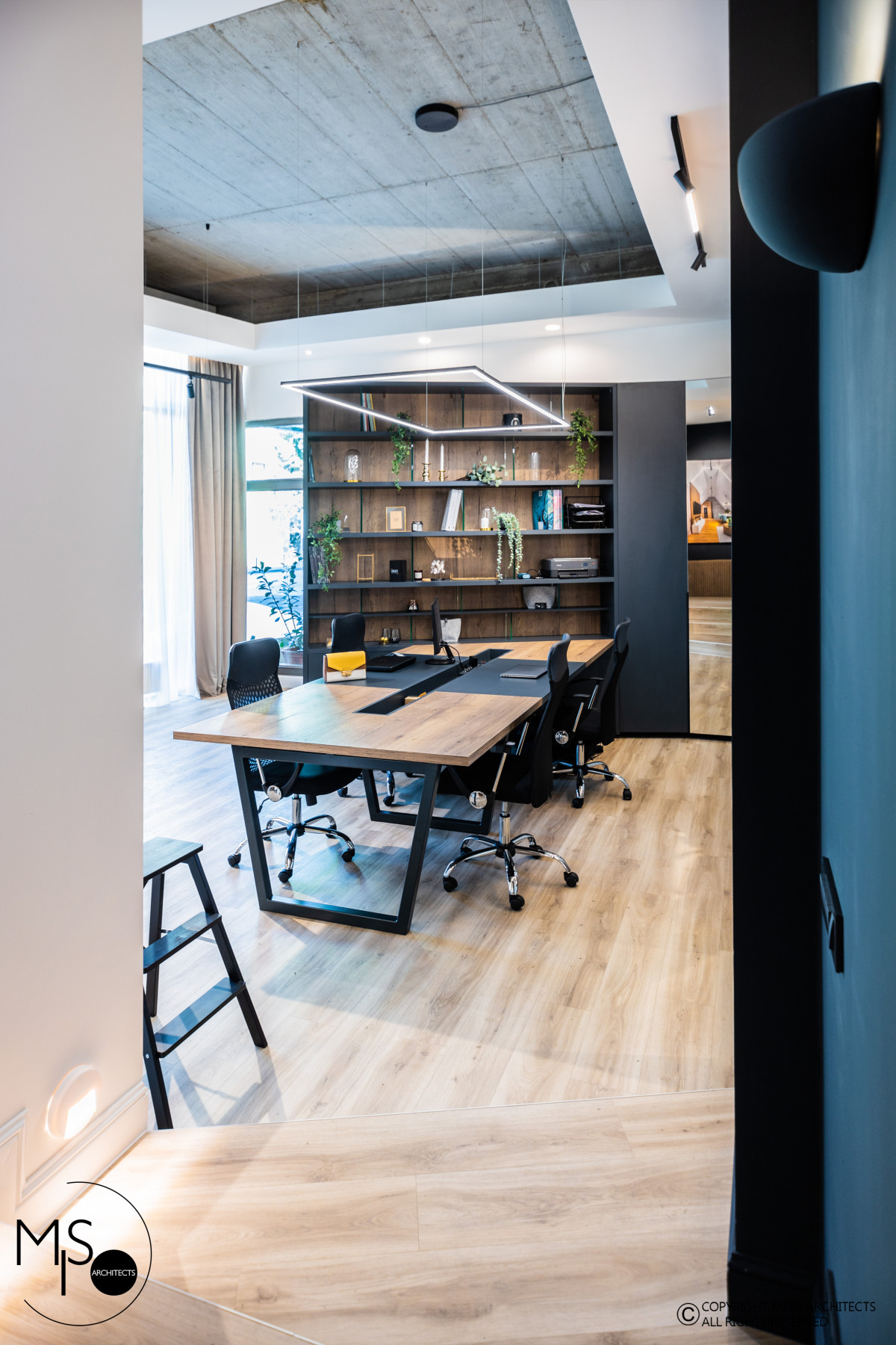 Ce carte de vizită poate fi mai convingătoare pentru un birou de arhitectură decât propriul spațiu de lucru? Sediul Miso Architects din Brașov nu este doar un simplu birou, ci un manifest al valorilor echipei: creativitate, transparență și o conexiune profundă cu natura. Amenajarea acestui spațiu comercial transformă rutina zilnică într-o experiență inspirațională, demonstrând clienților, încă de la intrare, puterea designului interior bine executat. Atmosfera este una aerisită, modernă, dar caldă, gândită să stimuleze ideile și să ofere confort vizual echipei.