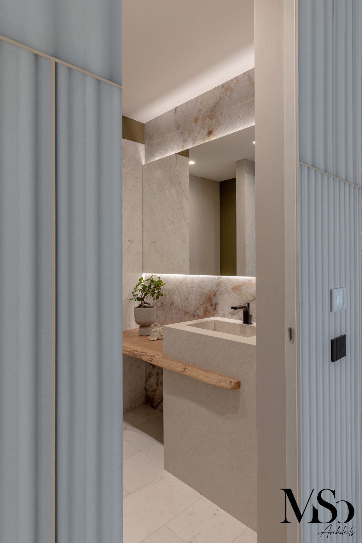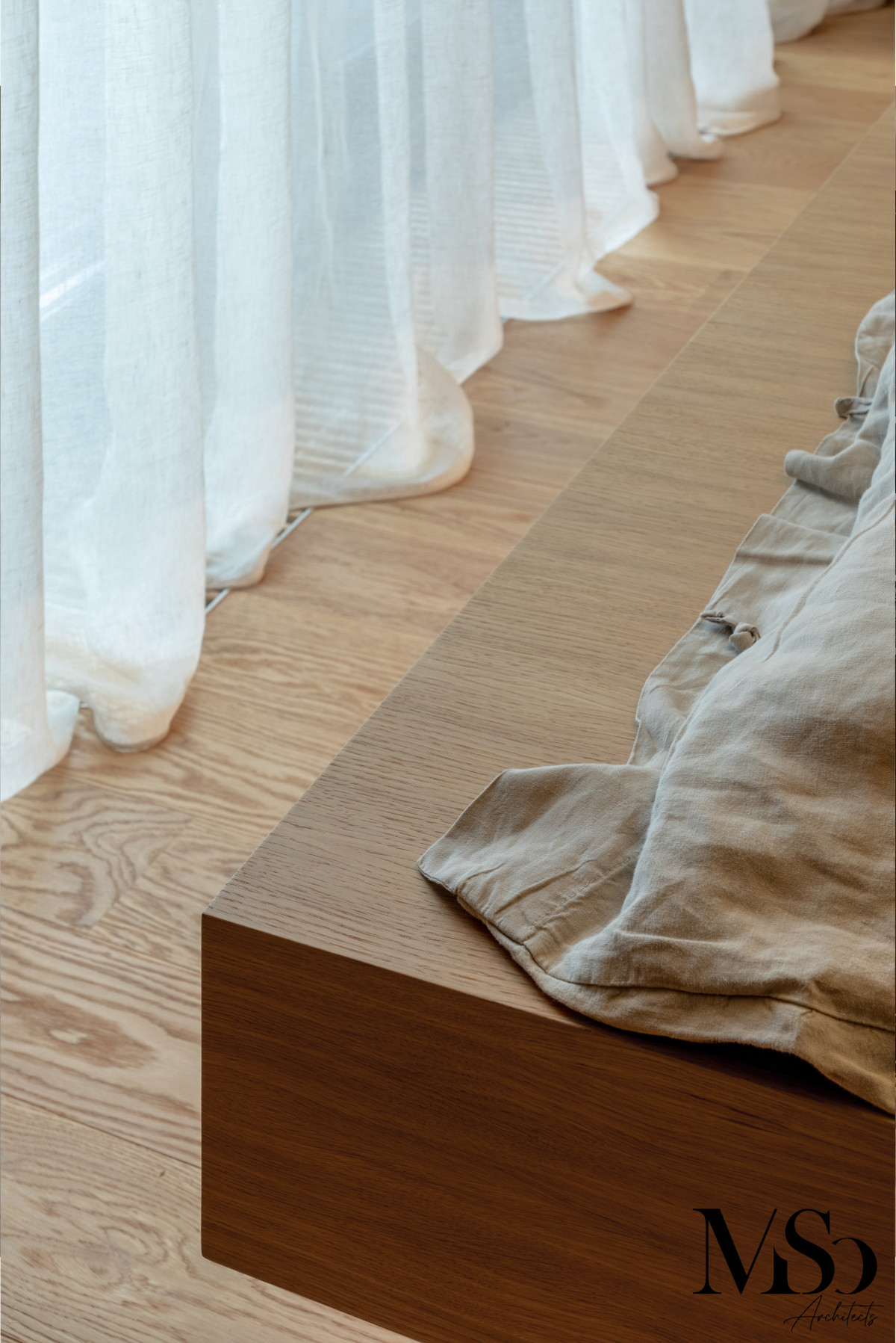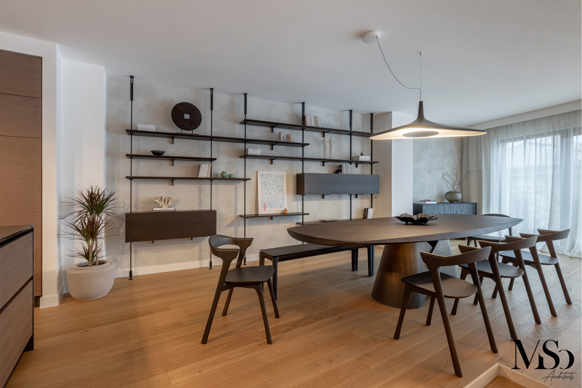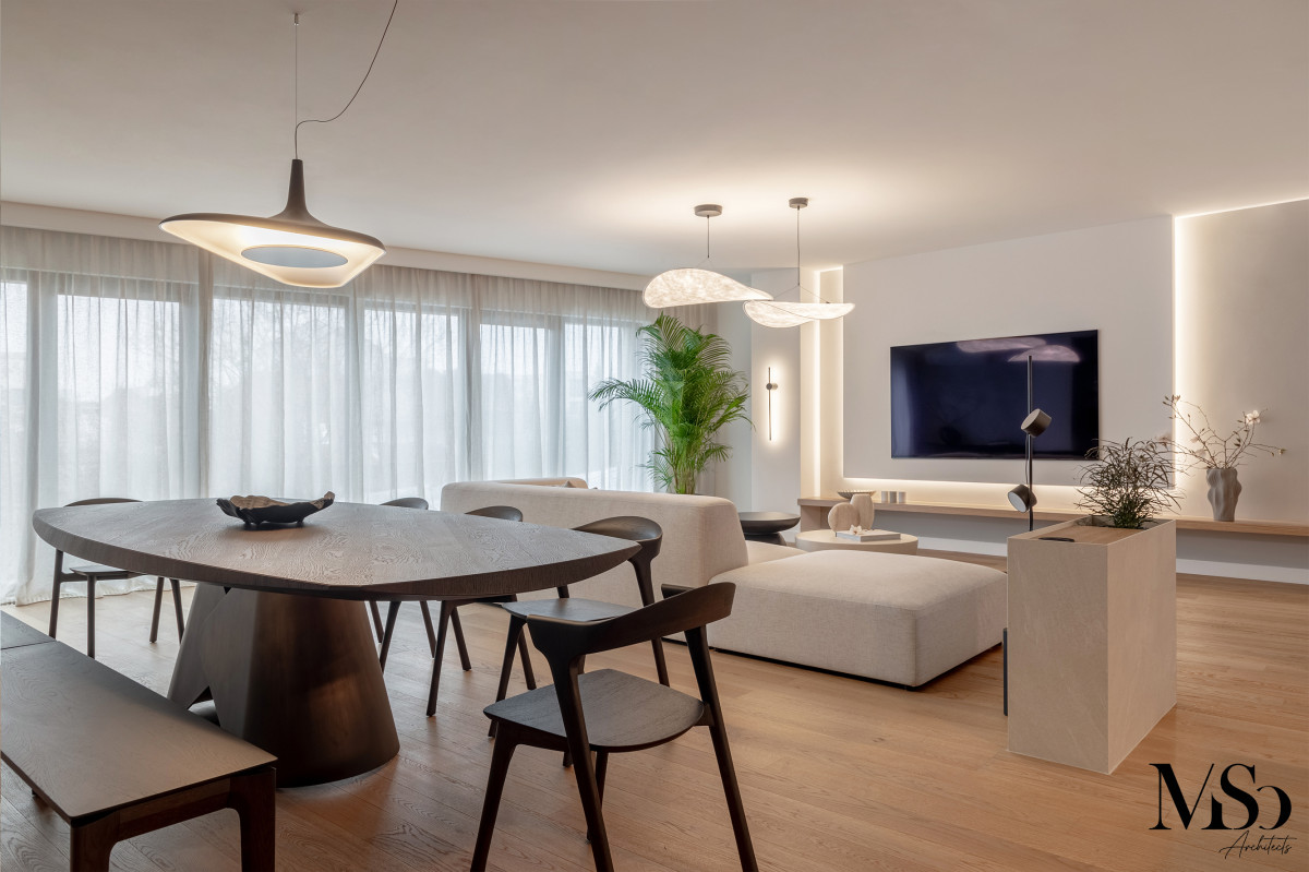 Proiectul Nomad Apartment, semnat de echipa Miso Architects, este o lecție de rafinament urban, demonstrând cum un spațiu poate fi simultan sofisticat și extrem de primitor. Situat în București, apartamentul reflectă filozofia „premium cozy” a designerilor, propunând o estetică modernă, curată, dar îmbogățită prin detalii care sugerează o poveste. Conceptul „Nomad” nu trimite la provizorat, ci la o colecție de experiențe vizuale, o călătorie stilistică în care confortul este destinația finală. Paleta cromatică neutră este scoasă din anonimat prin texturi prețioase și inserții subtile de auriu, creând o atmosferă de calm luxos.
