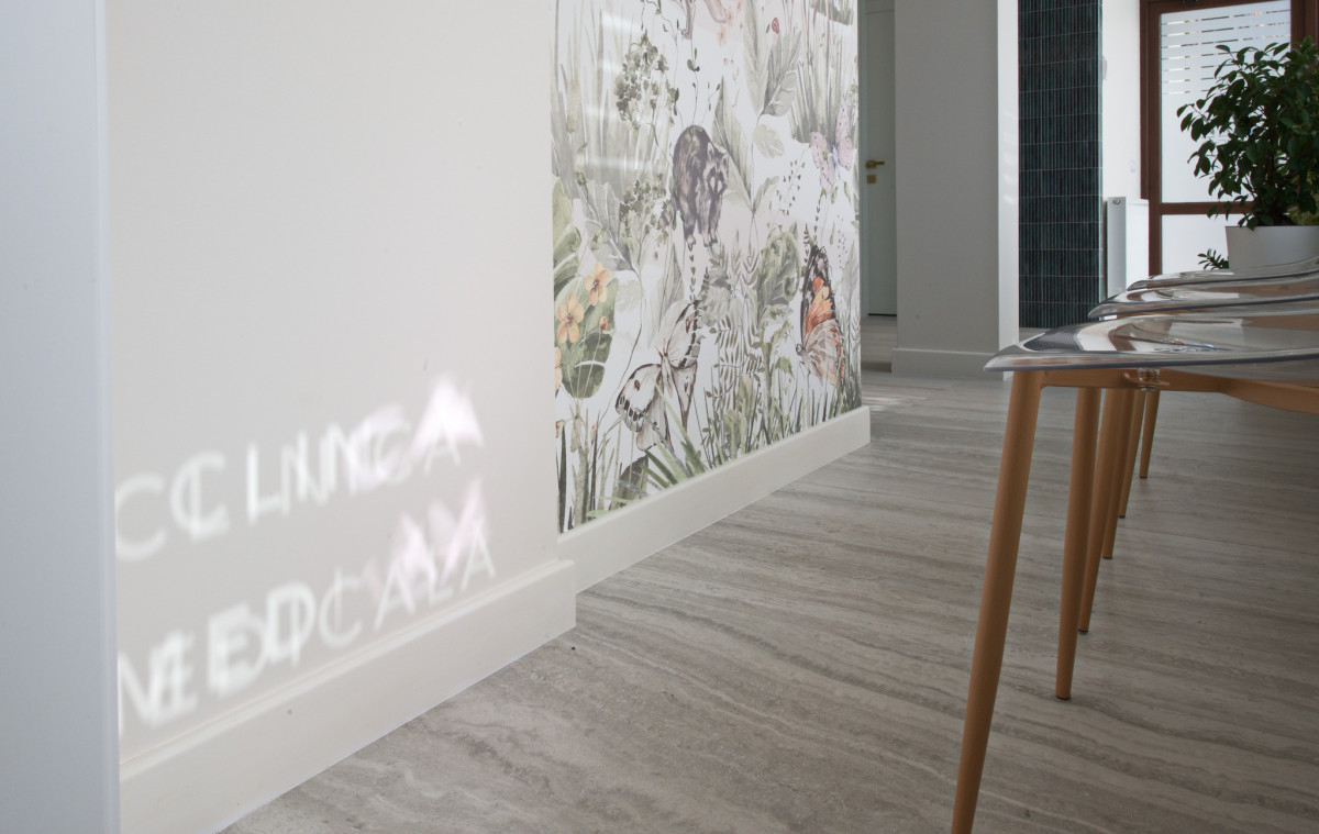 Prin alegerea acestui tapet premium, Simona a reușit să "încălzească" interiorul clinicii, demonstrând că starea de bine începe încă de la primul contact vizual cu mediul în care are loc tratamentul.