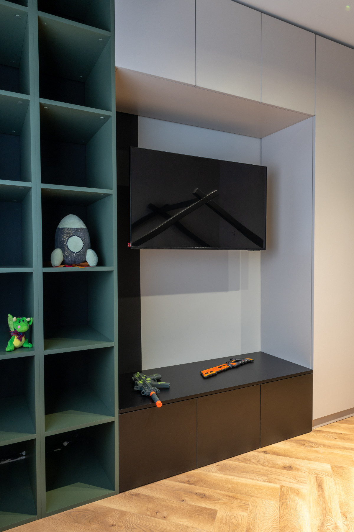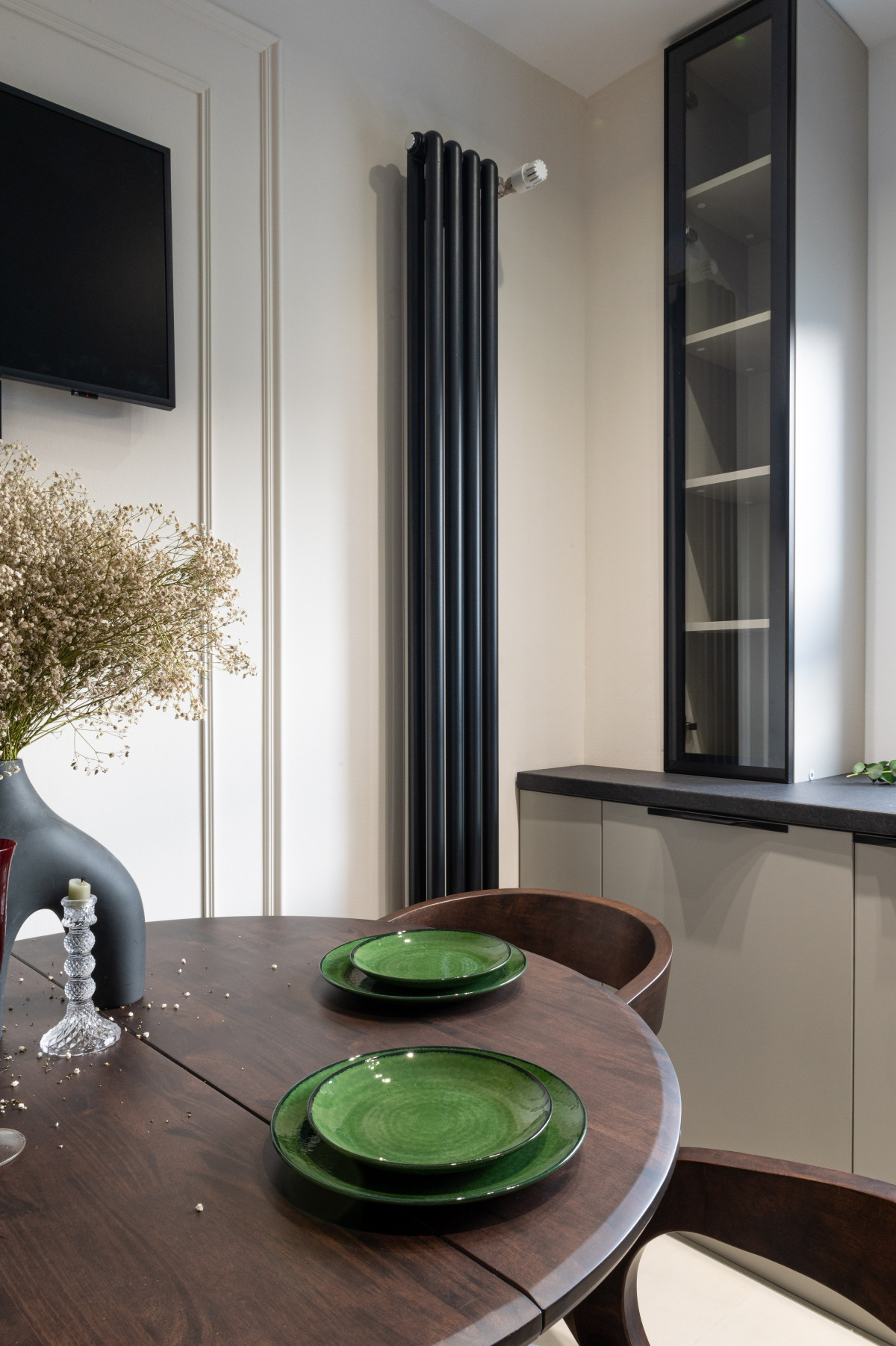• Geometria spațiului este definită clar și elegant cu ajutorul plintelor decorative Mardom Decor (model MD014). Realizate din PolyForce, acestea nu doar că protejează pereții, dar oferă un contur alb, curat, care echilibrează vizual bogăția cromatică a tapetelor.