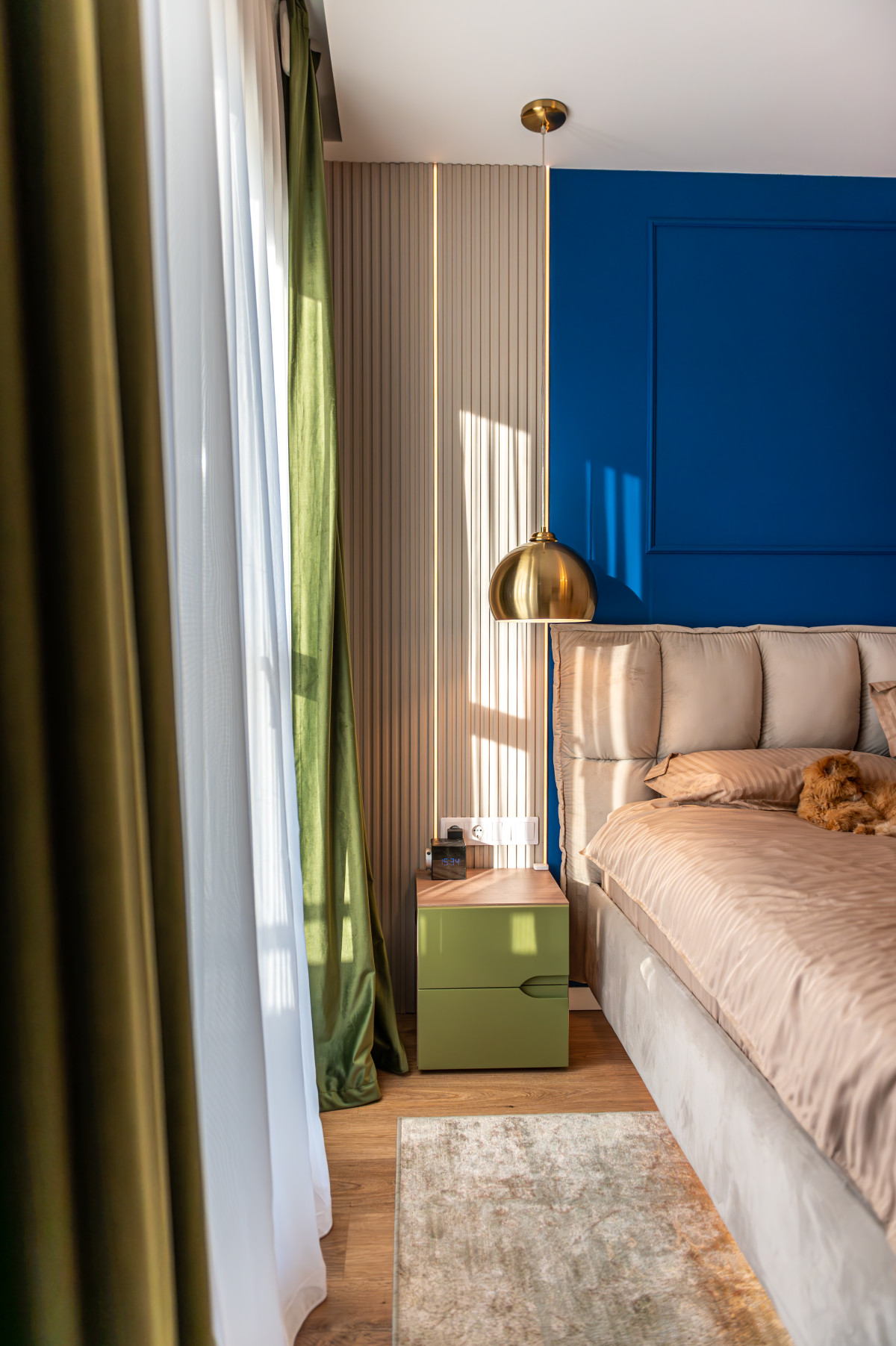 Rezultatul este o locuință cu adevărat vibrantă, unde arta murală autohtonă (VLAdiLA) se întâlnește armonios cu soluțiile tehnice de finisaj.
