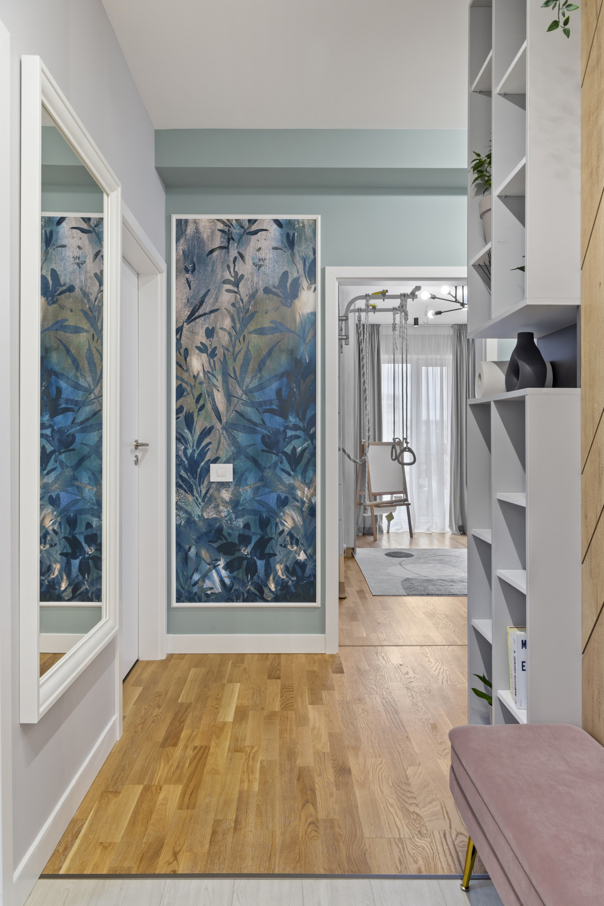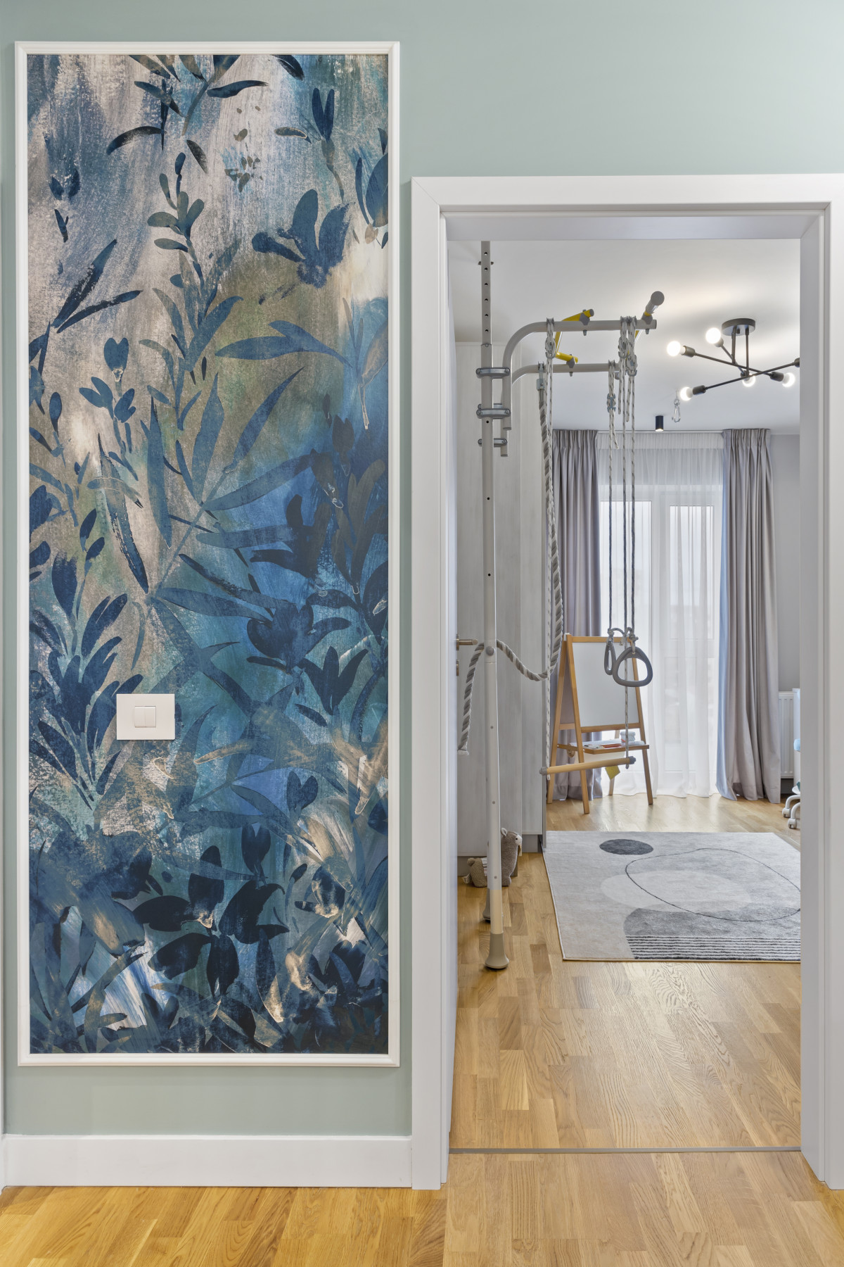 Tapet cu frunze delicate in nuante de verde si albastru Tapet cu frunze delicate in nuante de verde si albastru