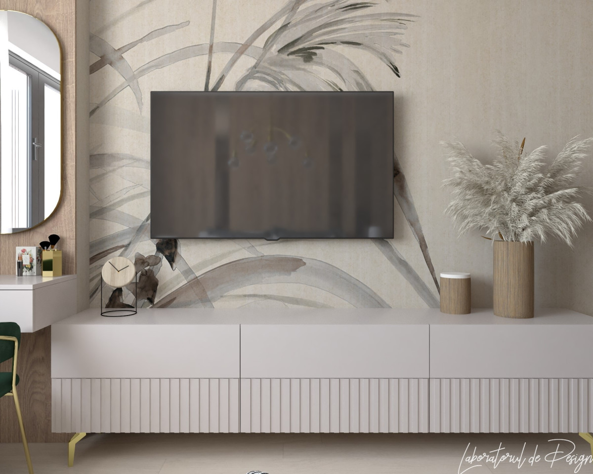 Wallpaper minimalist cu design de plante, tonuri neutre. Wallpaper minimalist cu design de plante, tonuri neutre.